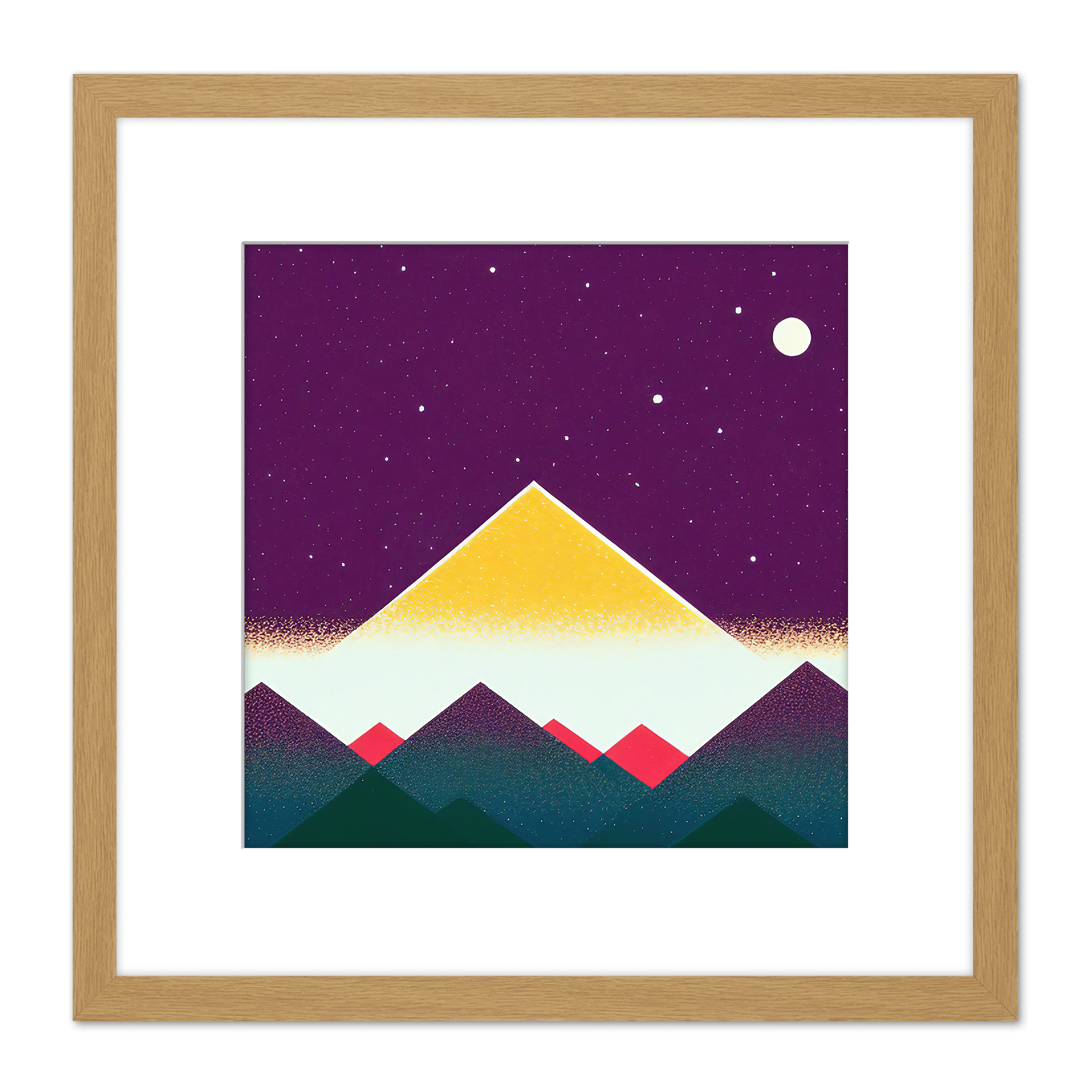 Abstract Purple Sky Pyramid Mountain Moon Square Framed Wall Art Print 8X8 In