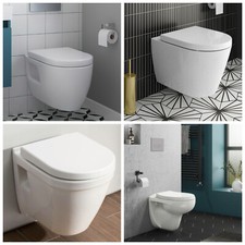 Toilet Wall Hung Mounted WC Round Square Designs Soft Close Seat Bathroom White