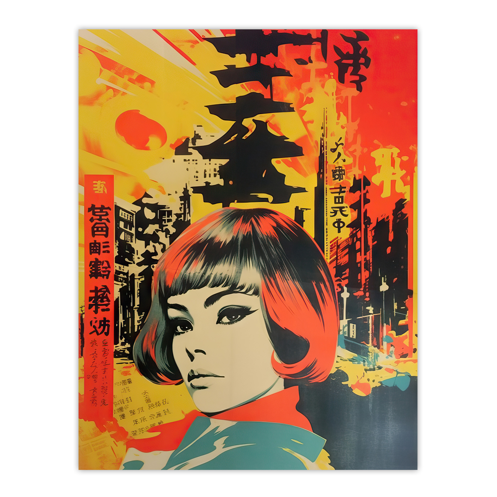 Tokyo Abstract 1960's Collage Orange Yellow Woman Portrait Wall Art Poster Print