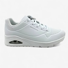 Ladies Skechers 73690W Uno-Stand On Air Wide White Memory Foam Lace Up Trainers