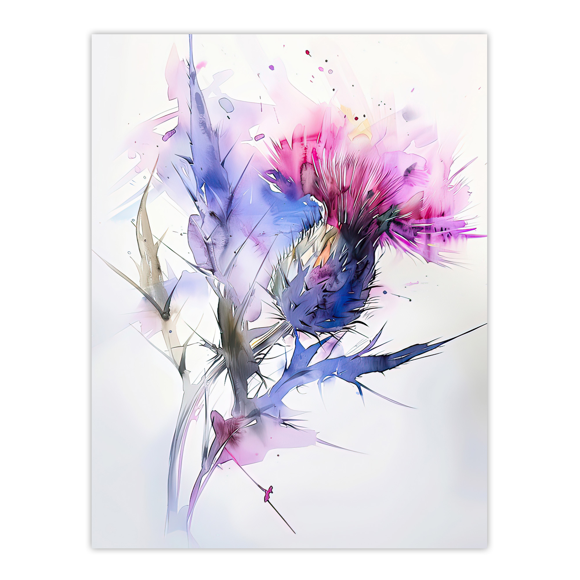 Thistle Flower Violet Pink Green Soft Watercolour Wall Art Poster Print
