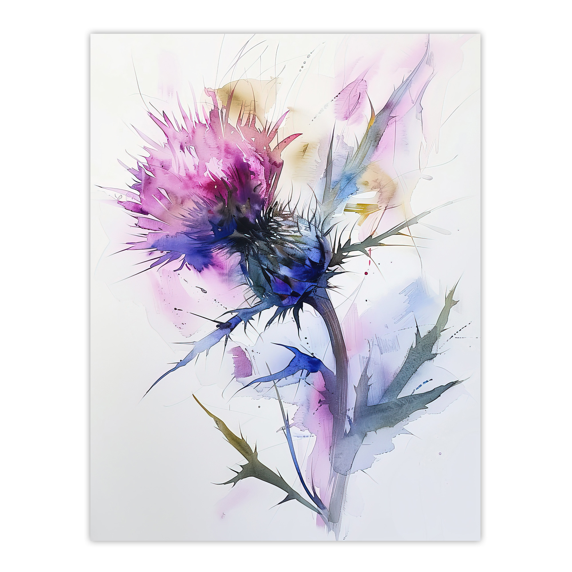 Thistle Flower Bloom Soft Watercolour Painting Wall Art Poster Print