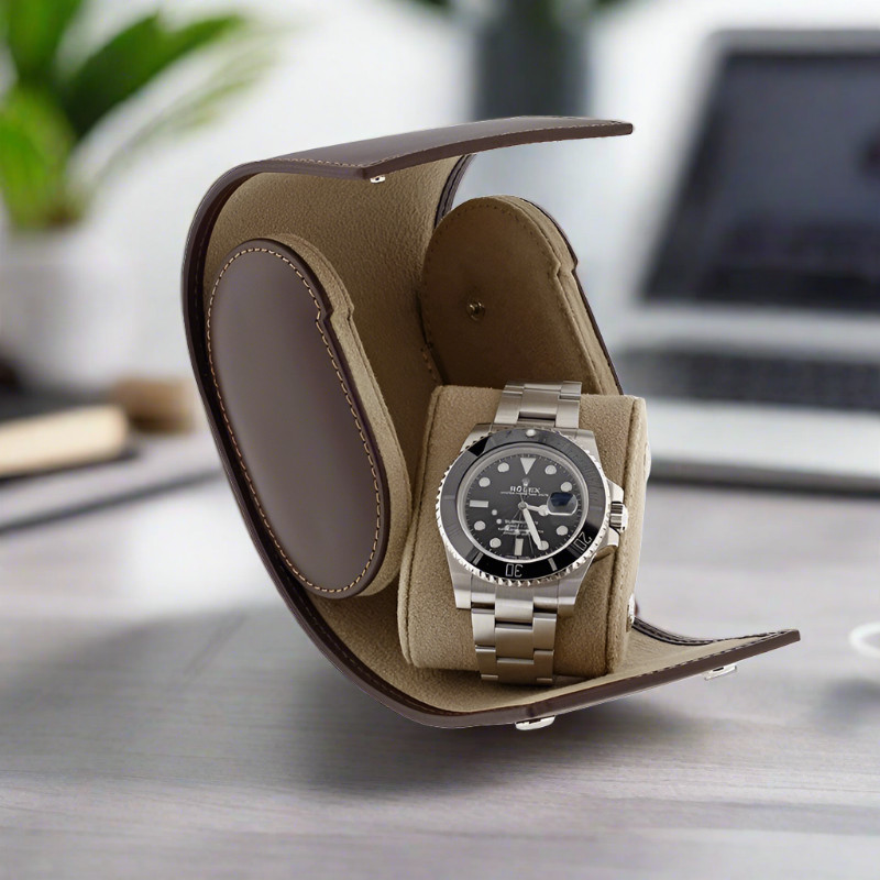 Size W 8 x L 9.7 x H 7 cm. The perfect Single Watch Roll Case for those who demand the finest quality travel storage for their luxury watches. Expertly crafted by hand using superb materials, Italian Calf Leather with Alcantara lining, this case is sure to impress.