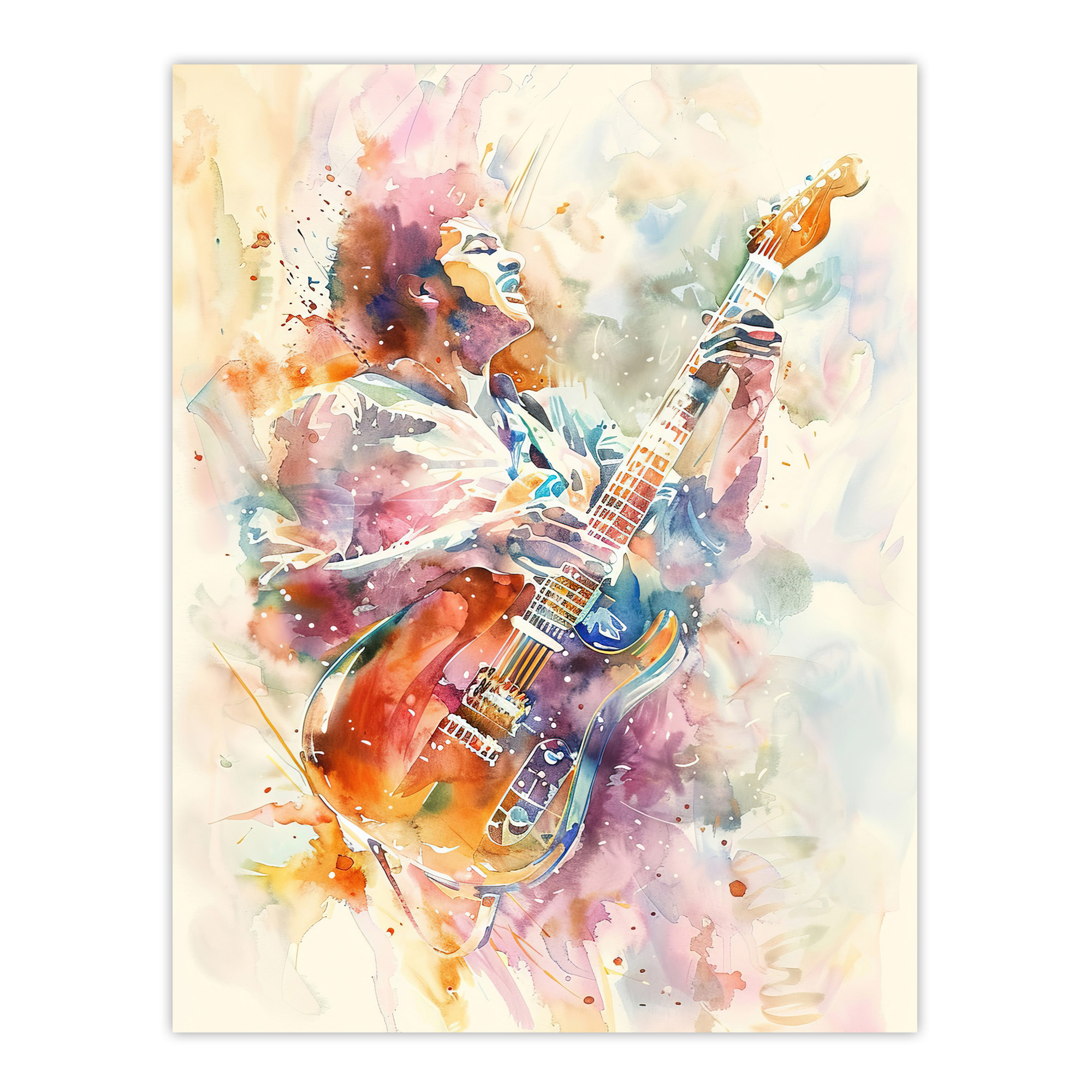 Colourful Watercolour Electric Guitar Musician Wall Art Poster Print