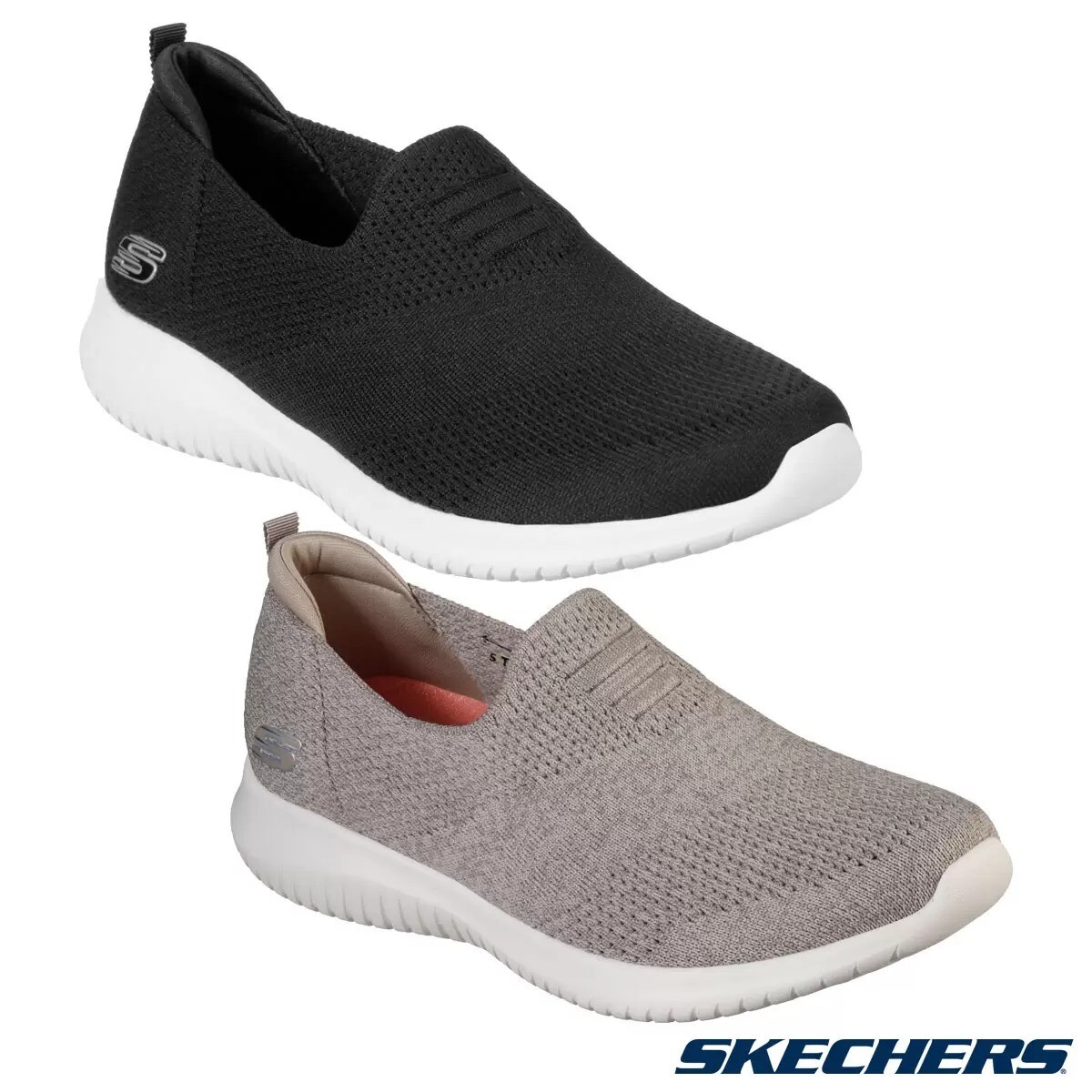 Keep your options flexible with sleek sporty style and comfort in the Skechers Ultra Flex - Harmonious shoe. Skechers® logo detail. Available in Black & Taupe. COLOURS: Black & Taupe. Highly flexible Ultra Flex midsole and rubber traction outsole.