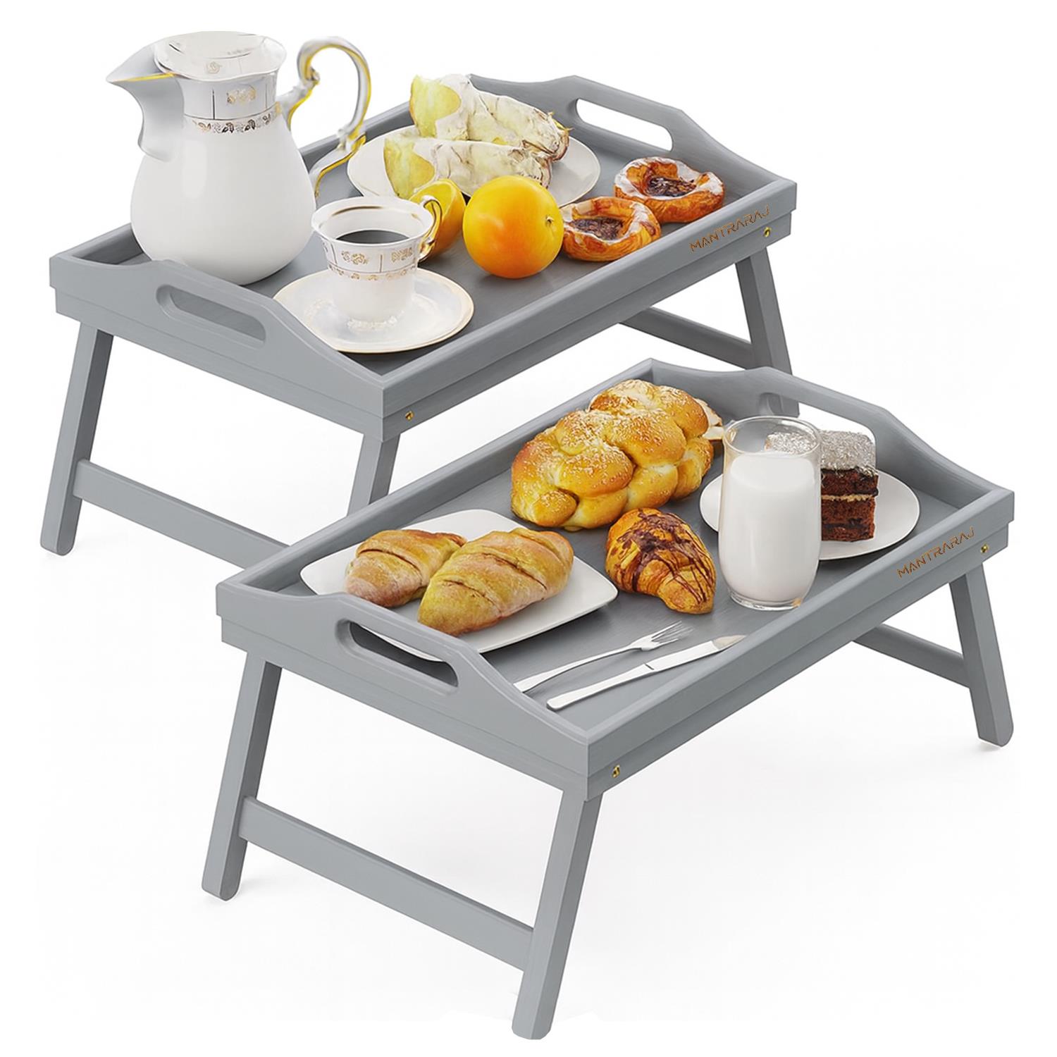 Bamboo serving tray Perfect for work or eat on the bed, this portable bed tray with legs can widely used in kitchen, bedroom, bed, sofa, and even in the outdoors etc. Elegant and delicate design of this breakfast tray can enhance the happiness of your life Laptop desk snack tray.