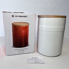 Le Creuset Storage Jar Canister Medium 12cm Red Ombre Ceramic Wooden Lid Stack