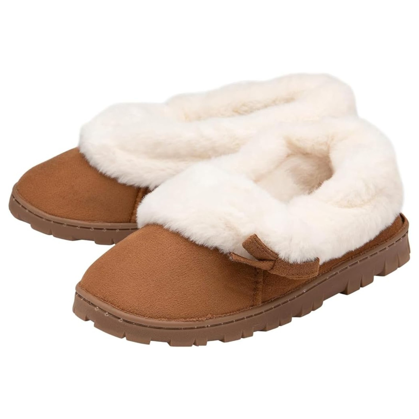 SUPER SOFT & WARM DUNLOP LADIES FUR CUFF SLIPPERS. Stylish Finish: Faux-fur cuff and bow detail for a feminine touch.