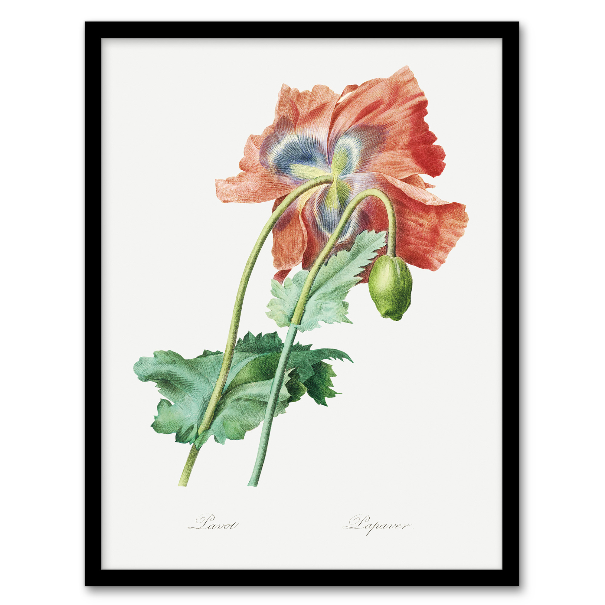 Redoute Framed Wall Art Poppy Flower Vintage Botanical Illustration Home Décor