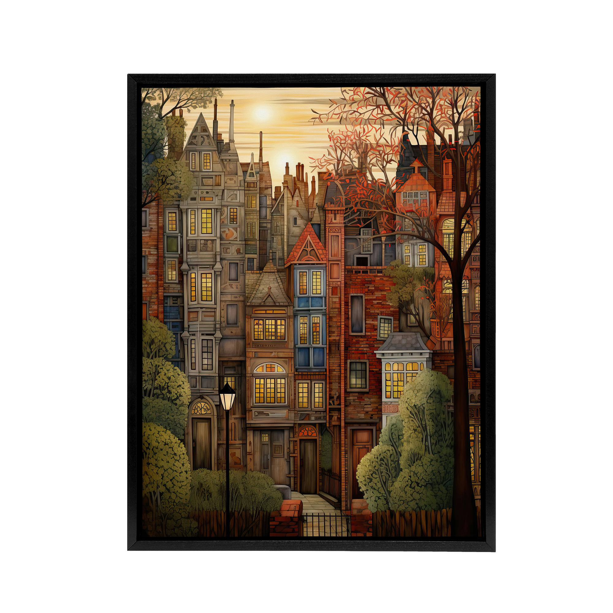 Autumn Sunset in English Cityscape Framed Canvas Wall Art Print