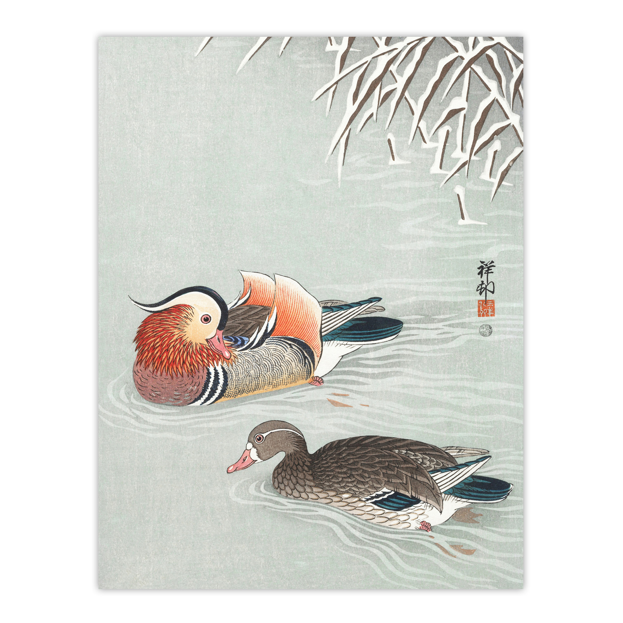 Two Mandarin Ducks in Snow Vintage Japan Framed Wall Art Print Koson
