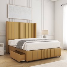 Double 4FT6. Experience luxurious sleep with this Deluxe Divan Bed Set. It also has hypoallergenic properties. The mattress is compatible with various sizes. Buy this original and heavy-duty bed set with a Chesterfield winged headboard and enjoy a good night's sleep.