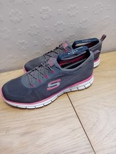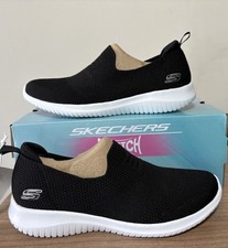 The Skechers Stretch Fit Air Cooled Memory Foam Ultra Flex trainers in UK size 8 are a brand new pair of slip-on sneakers designed for women in a Heather black. featuring a mix fabric upper, Skechers Air-cooled Memory Foam cushioned comfort insole, and an Ultra Flex midsole, these trainers offer a comfortable and flexible wear suitable for all occasions. With a rubber traction outsole for stability, these Skechers shoes are ideal for walking and casual wear, providing a stylish and practical option for everyday use.