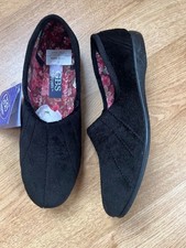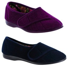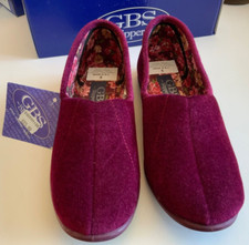 The GBS Ladies Slip On Slippers are designed for women who want comfort and easy wear. With a round toe and a flat heel, these floral patterned slippers feature a slip-on closure for convenience. Made with cotton upper material and synthetic lining, these moccasin style slippers are perfect for relaxing at home. The rubber outsole ensures durability, while the standard width fits most feet comfortably. Made in the United Kingdom by the trusted brand GBS Slippers.