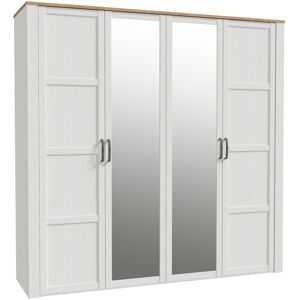 This wardrobe is characterised by a central mirrored door, and two doors in a high gloss white finish, with the rest of the body in a matt white finish. This wardrobe is characterised by two mirrored doors, the remaining doors in a high gloss white finish, and the rest of the body in a matt white finish.