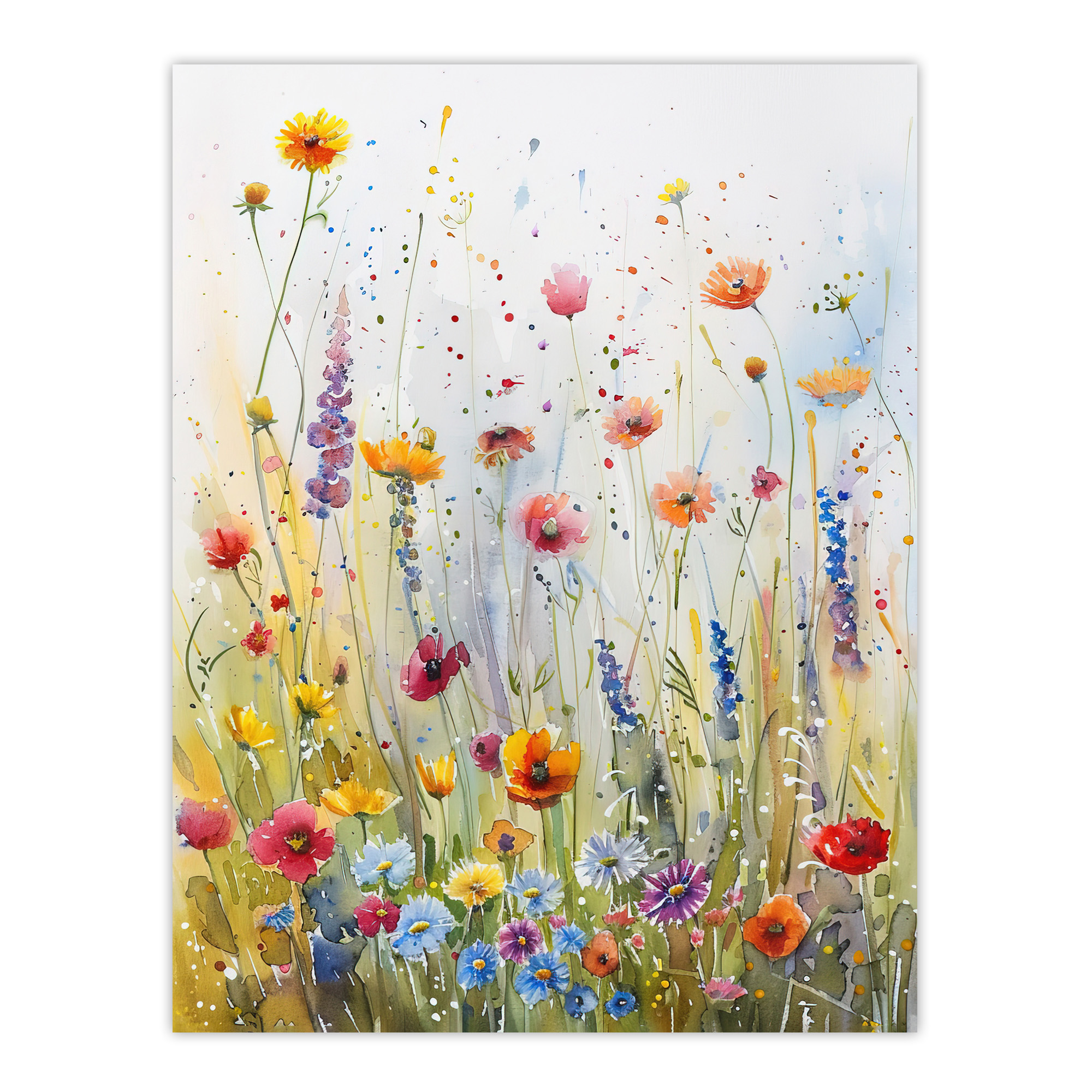 Spring Wildflower Meadow Watercolour Painting Wall Art Poster Print