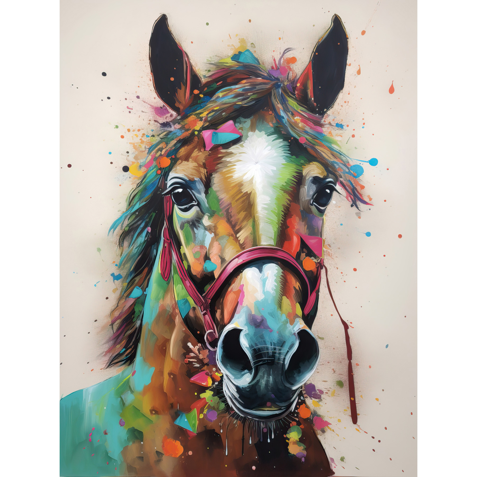 Horse Multicoloured Spray Paint and Oil Painting XL Wall Art Canvas Poster Print