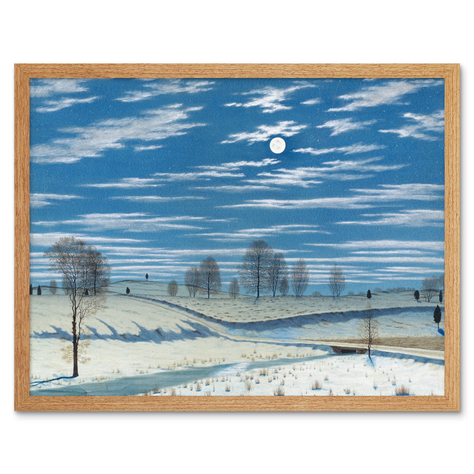 Farrer Winter Scene In Moonlight Painting Wall Art Print Framed 12x16