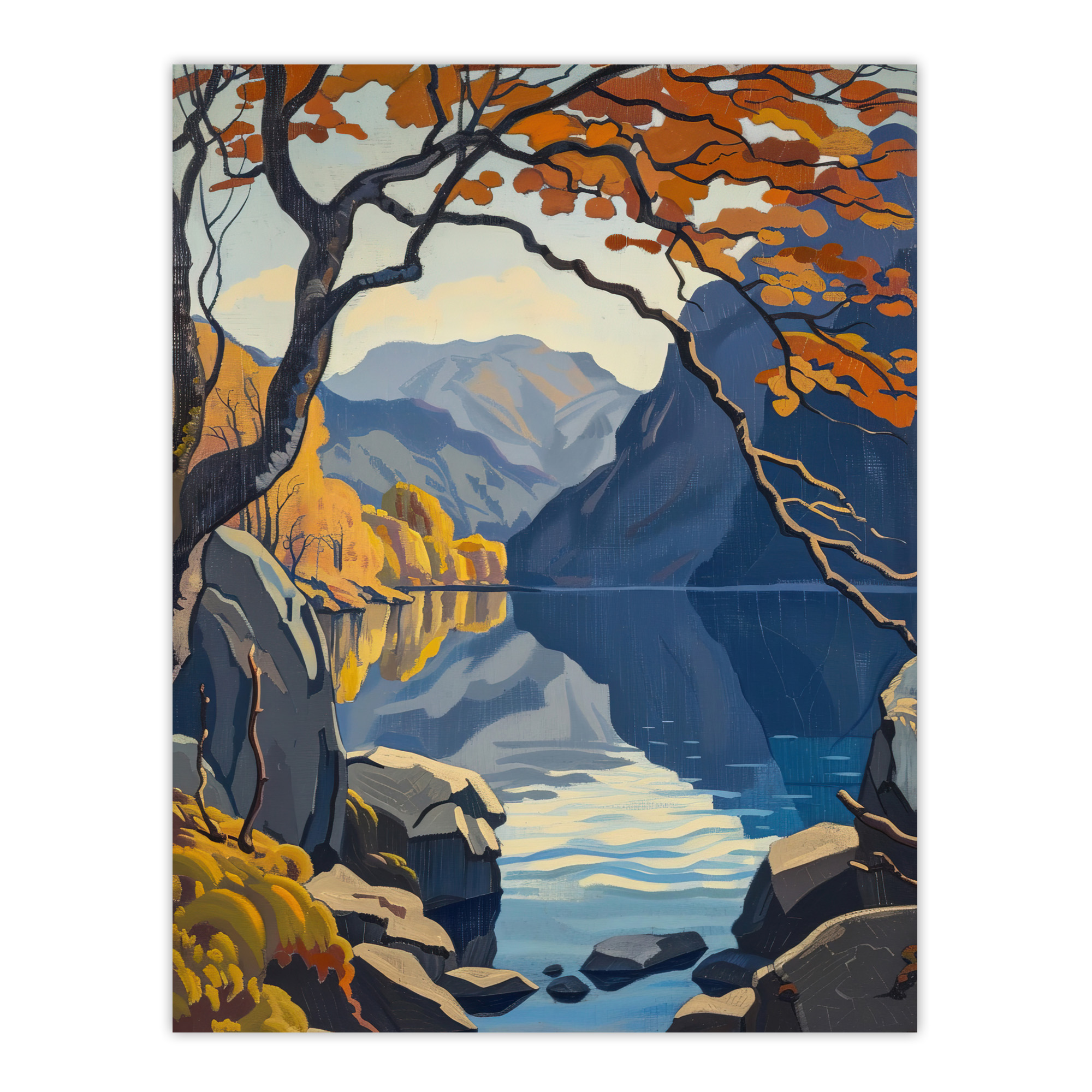 Autumn Tree Lake District Cumbria Mountains Wall Art Poster Print