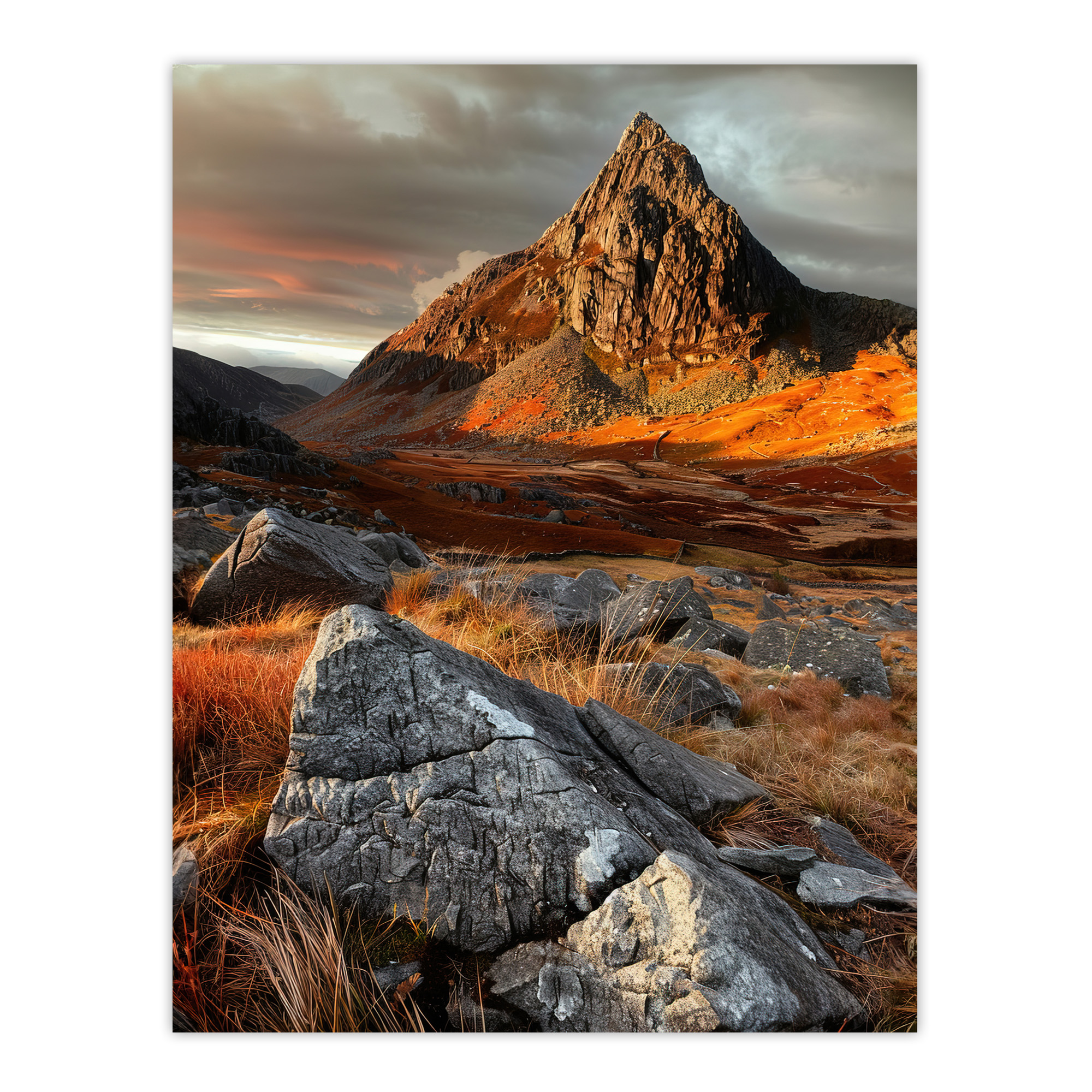 Tryfan Mountain Summit Sunset Wales Snowdonia Wall Art Poster Print