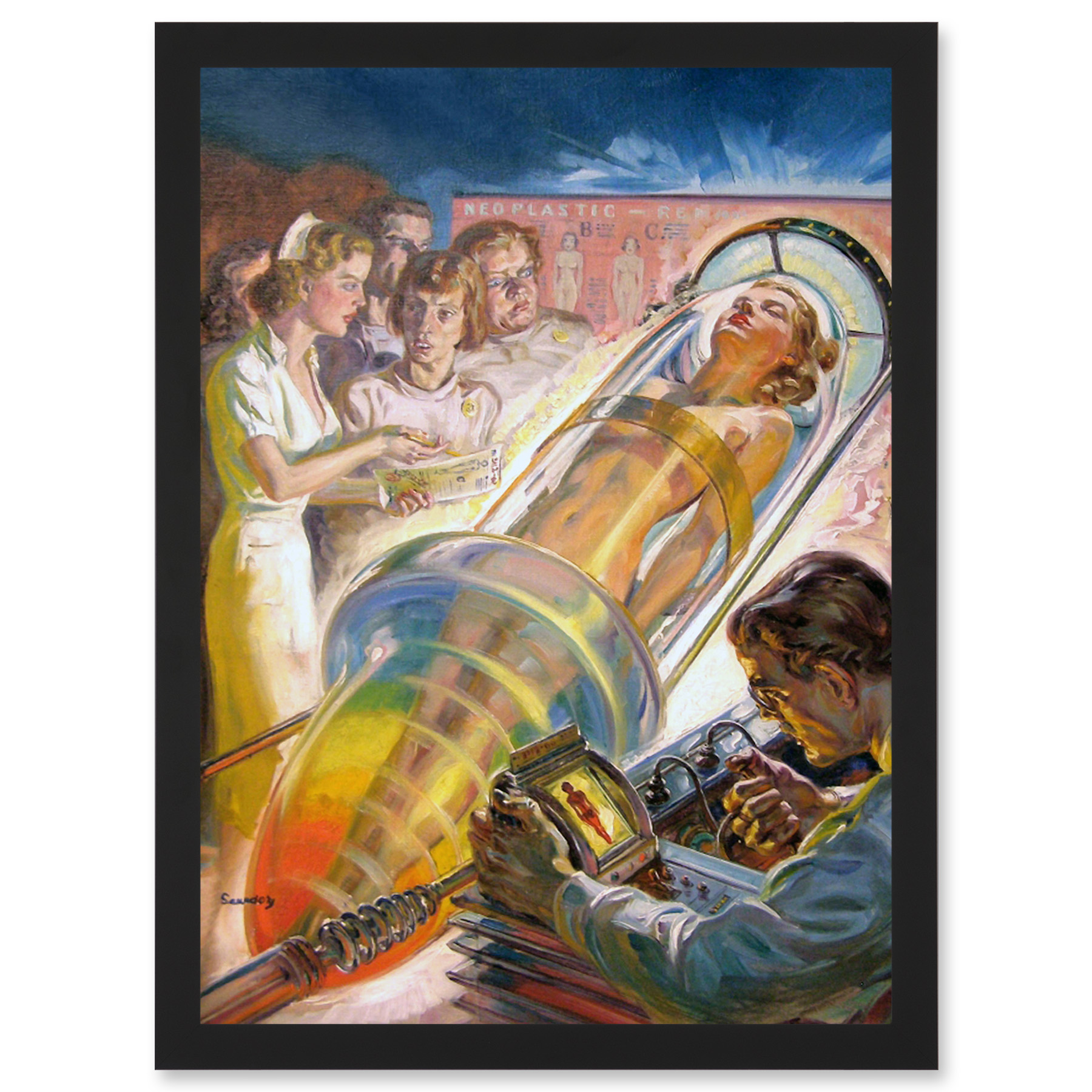 Vintage Sci Fi Neo Plastic Woman Scientist Space Age Framed A4 Wall Art Print