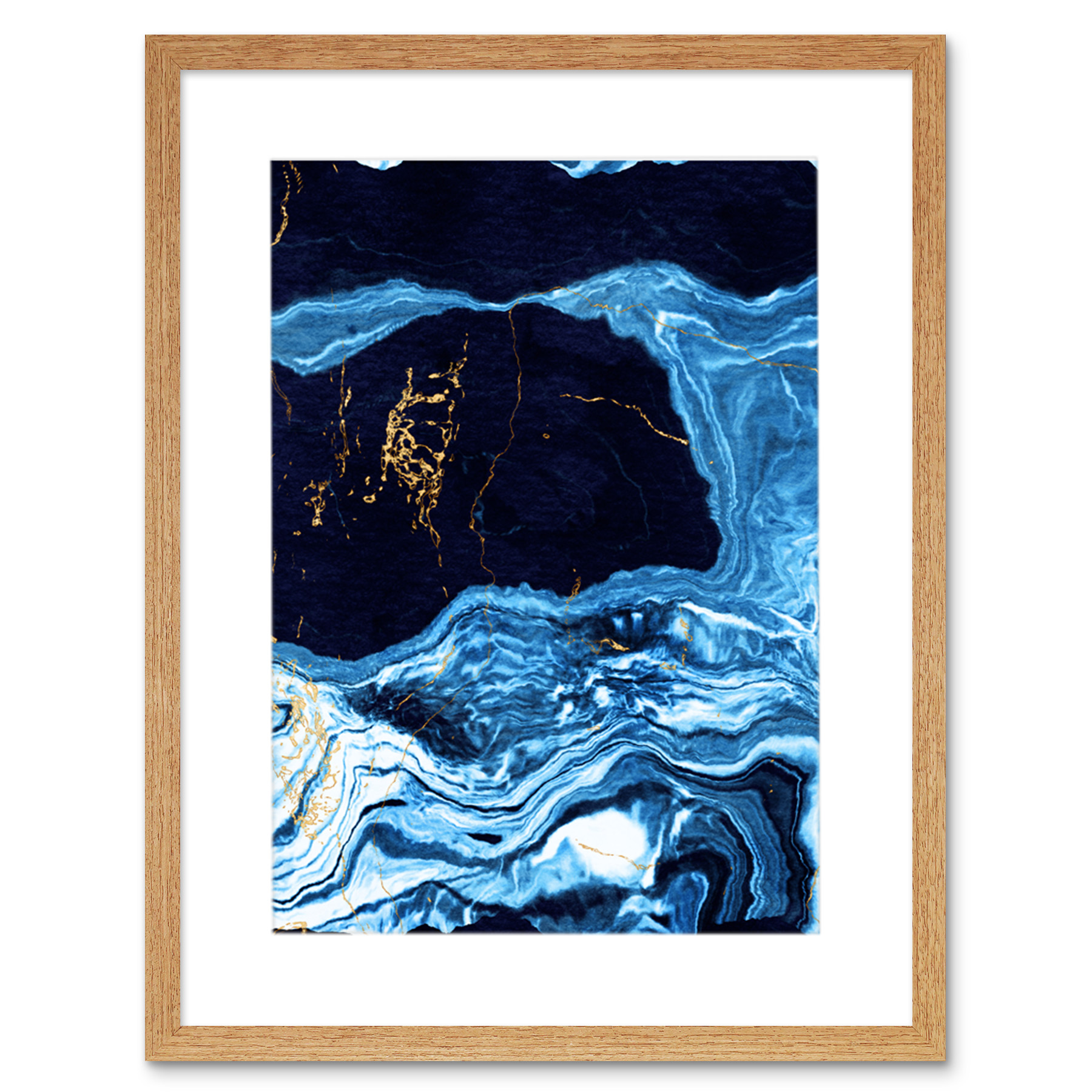 Abstract Dark Blue Gold Drips Framed Wall Art Print 12X16 In