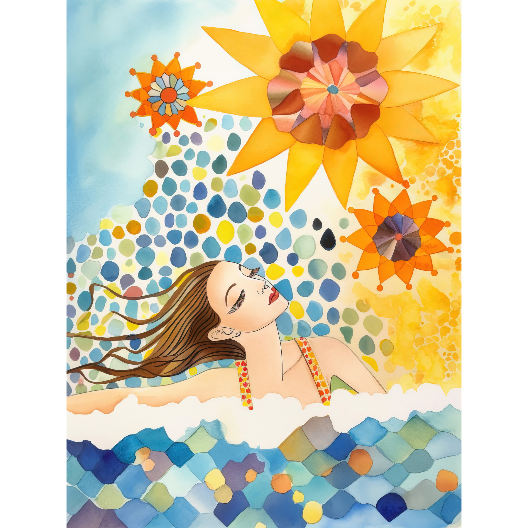 Abstract Sea Swimming Modern Folk Art Bathroom Framed Art Picture Print 12x16