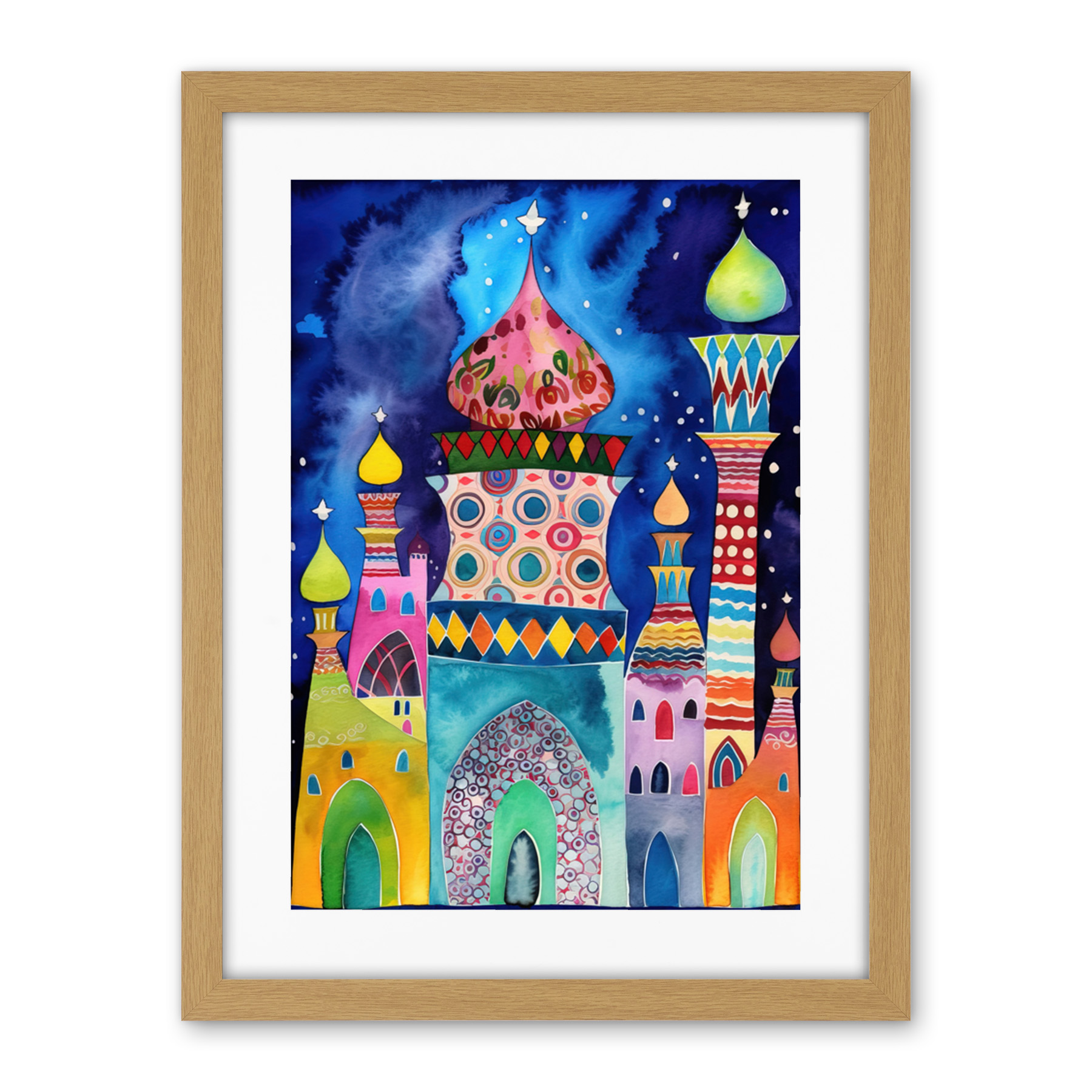 Mosque At Midnight Modern Folk Art Framed Print Wall Art Picture 18X24