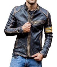 Mens Motorcycle Cafe Racer Distressed Brown Genuine Leather Biker CLARA Jacket