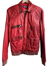 DOLCE & GABBANA Mens Leather Bomber Jacket IT 50 Large Black Biker DN47.