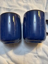 The DENBY Imperial Blue Beaker Mugs are a stylish and practical addition to your tea or coffee collection. Made from stoneware in England, these round mugs feature a glossy finish in a vibrant blue colour. With a diameter of 9cm and a height of 10cm, these mugs are perfect for enjoying your favourite hot drinks. The mugs are also stackable, freezer safe, microwave safe, and dishwasher safe, making them a convenient choice for everyday use. Perfect for adding a touch of classic British charm to your kitchen or dining room. These mags have been lightly used, but they’re in very good condition.