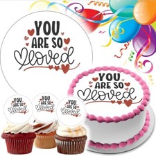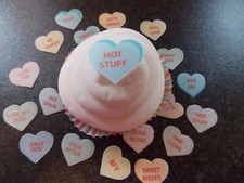 PRE CUT 24x Edible Love Heart Valentines Day Cupcake Drink Toppers Wafer Fondant