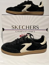 Skechers Women's Eden Lx-Slight Shimmer Black Gold Available In Sizes 7.5 & 7 Sole material :Rubber Outer material: Polyurethane (PU) Closure type: Lace-Up Skechers Air-Cooled Memory Foam cushioned comfort insole Classic style midsole with flexible traction outsole 1-inch heel height Machine washable Sparkly duraleather upper with modern S logo stitching detail