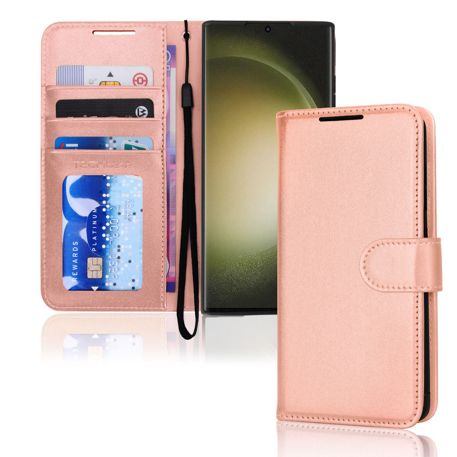 TECHGEAR® Premium PU Leather Wallet Case, Protective Flip Cover with Card Slots, Kickstand and Wrist strap available for Samsung S23, S23 FE, S23 Plus, S23 Ultra. Exterior---Crafted from durable, sturdy, excellent grain PU leather.