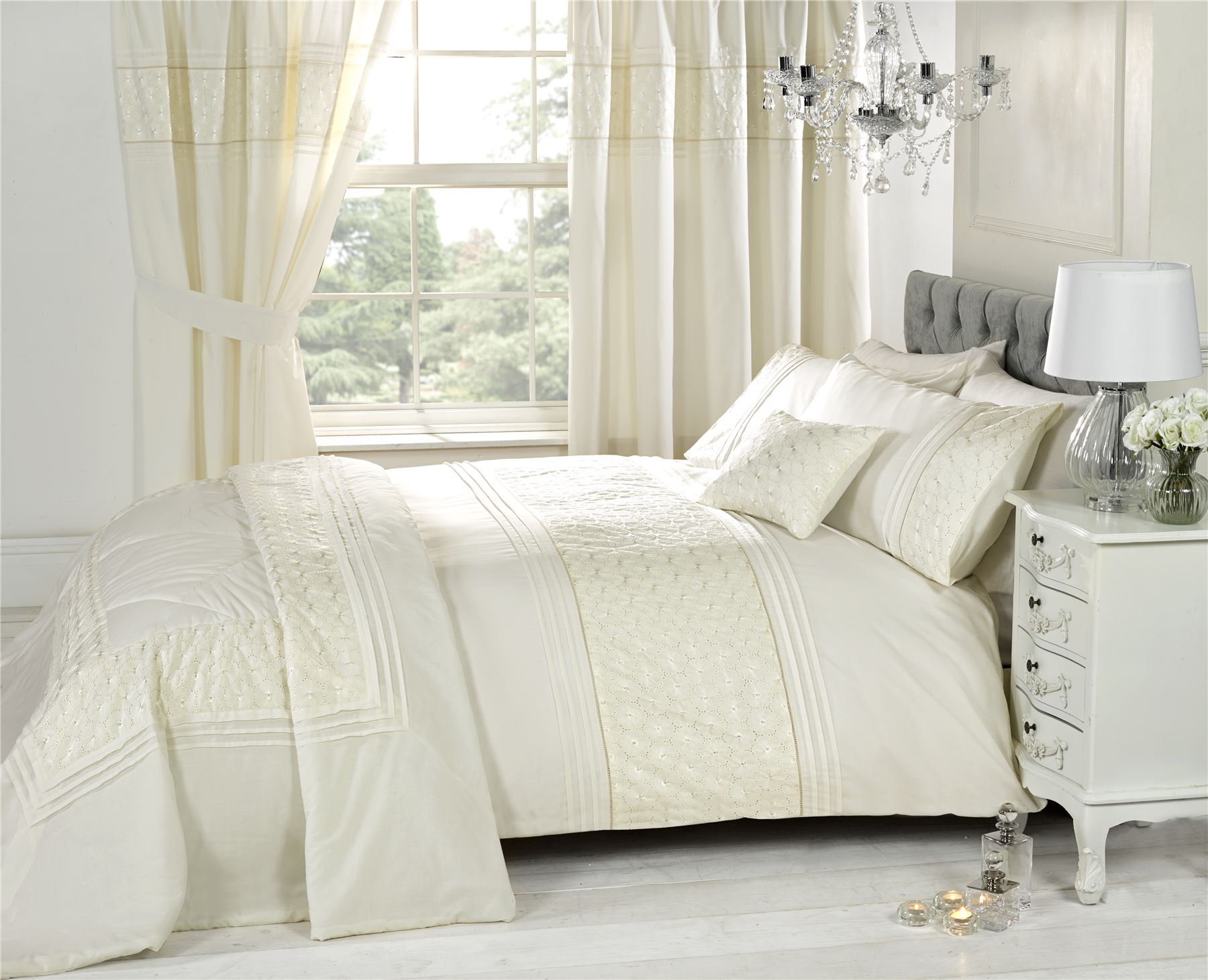 Everdean is an elegant collection of finely crafted embellished bedlinen. Single: 1x duvet cover (135x200cm) & 1x matching pillowcase (50x75cm). Double: 1x duvet cover (200x200cm) & 2x matching pillowcases (50x75cm).