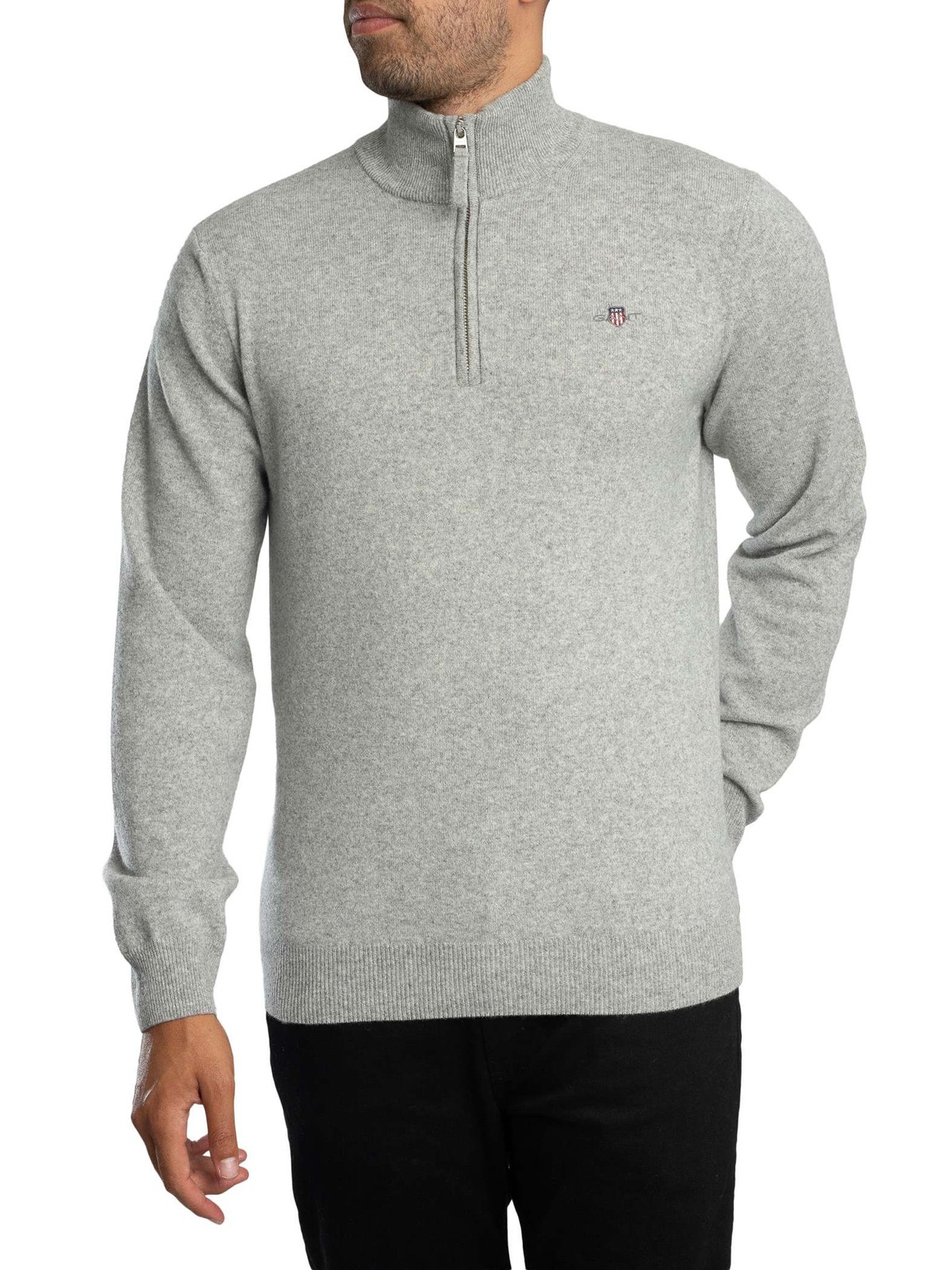 GANT Men's Superfine Lambswool Half Zip Knit, Grey