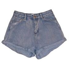 The Princess Polly Women's Jean Shorts in size 6 are a stylish and comfortable addition to any wardrobe. Made from 100% cotton denim, these high-rise shorts feature a classic 5-pocket design with a zipper closure. The frayed cut-off pockets add a trendy touch to the solid blue color, making them perfect for casual or travel occasions during the summer, fall, or spring seasons. With a regular fit and flat front, these shorts offer both comfort and style for the modern woman. Across waist 13” Inseam 3” Rise 10 3/4” Full length 13”