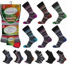 3 Pairs of Striped Mens Diabetic Stripe Socks Loose Top 6-11 UK Gentle Soft Grip