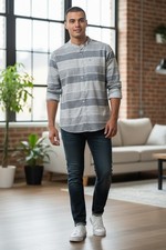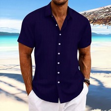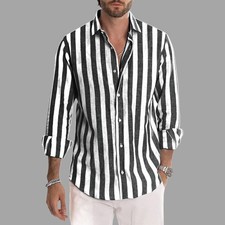 Mens Striped Beach Shirts Collar Button Up Summer Long Sleeve Loose Tops 3XL