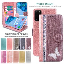 Bling Glitter Leather Flip Phone Case for Samsung S21 S20 Ultra S9 Wallet Cover