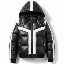 Detachable Puffer Hood- A stylish and warm leather jacket for many outdoor casual and sports activities. Rock star Motorcycle style leather jacket. Light weight and very comfortable. Made from soft lambskin leather.