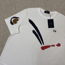 Fred Perry Men's White Graphic Logo T-Shirt Size L Short Sleeve