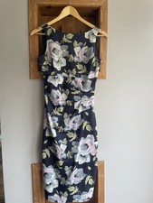 This Karen Millen women's floral dress in size 8 petite is a new with tags garment perfect for a party or cocktail occasion. The dress features a vibrant multicoloured floral pattern, a fit and flare style, and a midi length. Made from polyester, it requires dry cleaning only for care. Ideal for summer and spring seasons, this dress is a stylish addition to any woman's wardrobe. Designed by the renowned brand Karen Millen, this dress offers both fashion and quality for the modern woman.
