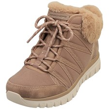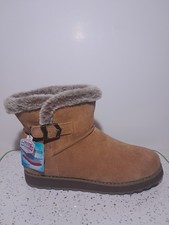 The Sketchers Go Walk Joy Booties are a comfortable and stylish option for women in size 10. These ankle boots feature a round toe shape, pull-on closure, and flat heel for all-day wear. The brown suede upper with faux fur lining adds a touch of warmth, making them perfect for casual or travel occasions. The rubber outsole ensures durability, while the air-cooled Goga Mat insole provides added comfort for long walks. With the Skechers brand's reputation for quality footwear, these booties are a reliable choice for everyday wear.