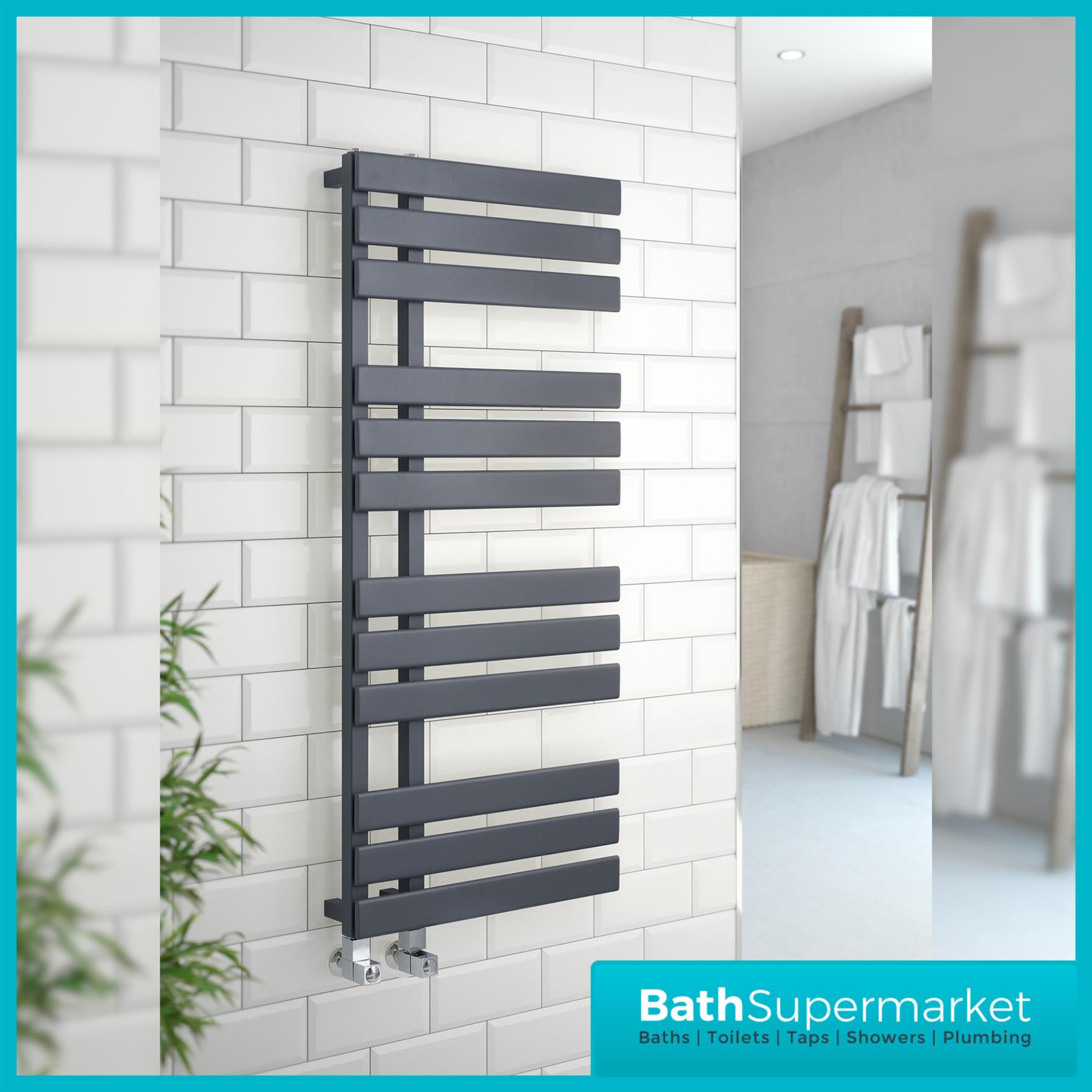 Denver Anthracite Designer Heated Towel Rail 600mm x 500mm. Denver Anthracite Designer Heated Towel Rail 1000mm x 500mm. Kolumn Anthracite Designer Heated Towel Rail 500mm x 832mm. Horizontal Wall Mounted.