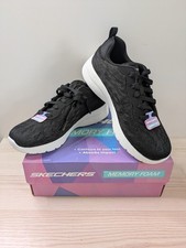 SKECHERS Womens Dynamight 2.0 In A Flash Trainers Navy/Light Pink. SKECHERS memory foam machines washable trainers. These are perfect for long days when your walking around or working. Textile upper and lining. Memory foam cushioning. Lace fastening. Rubber sole.