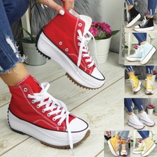 Ladies Trainers Canvas Womens Grip Platform Lace Up Casual Sole Sneakers Shoes