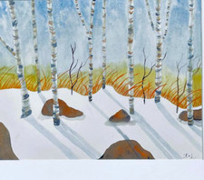 PAINTING WATERCOLOR 11X14 MAT 16X20 TREE LANDSCAPE FALL ORANGE RED ORIGINAL ART