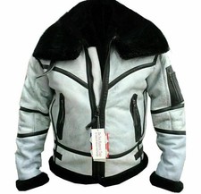 MEN'S RAF AVIATOR B1 BOMBER BLACK REAL SHEEPSKIN LEATHER JACKET WITH FAUX FUR