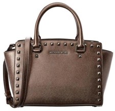 Authentic Michael Kors Ash Gray Newbury Leather Studded Shoulder Bag